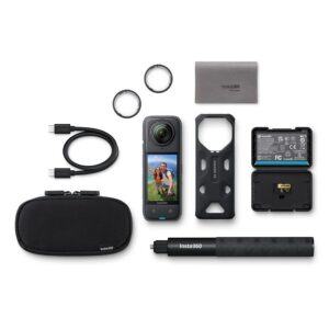 | Комплектация | Экшн-камера, Аккумулятор 2 шт, Стандартная защита объективов, Теплоотводящий чехол Thermo Grip Cover, USB-кабель для зарядки, Салфетка для оптики, Документация, Футляр для хранения, Карта памяти 256 ГБ, Монопод Insta360 Invisible Selfie Stick. |